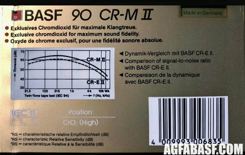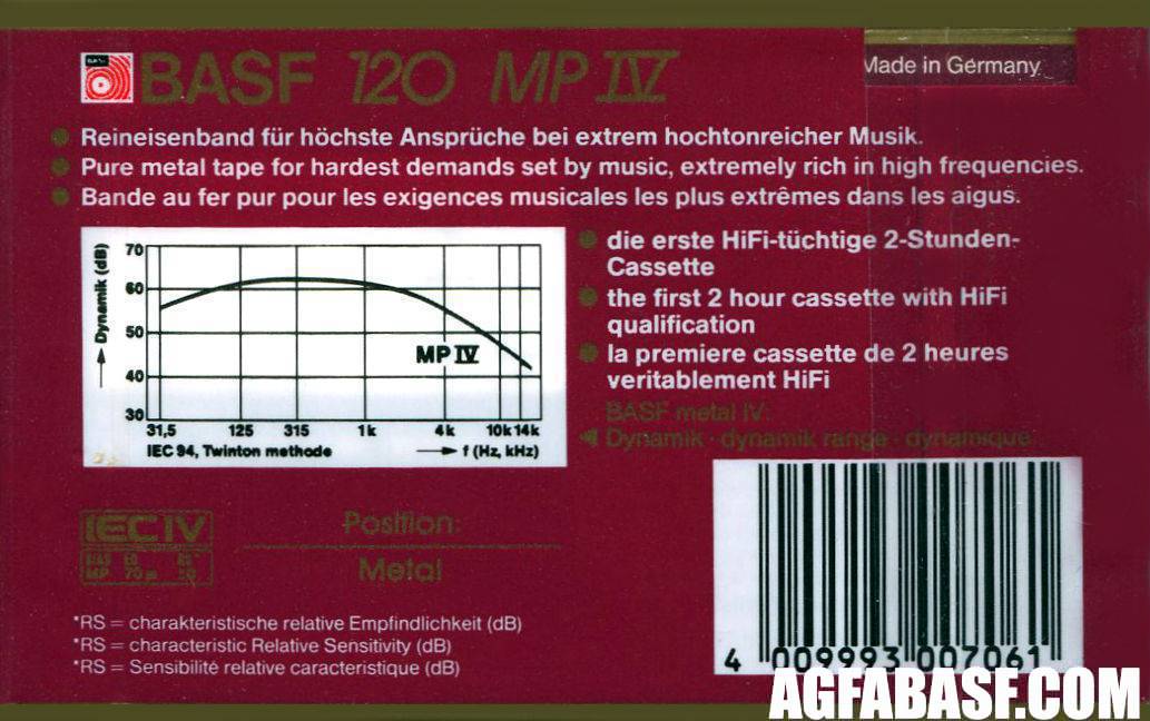 Иногда на оборотной стороне кассет BASF не было привычной надписи made in Germany. По имеющейся информации, made in... указывалось для правильного начисления таможенной пошлины. Если кассета (как и любой другой товар) не пересекала таможенную границу государства, где она была произведена, то надпись made in ... не проставлялась. Проще говоря, отсутствие данной надписи означает, что кассета BASF была произведена для внутреннего рынка Германии.