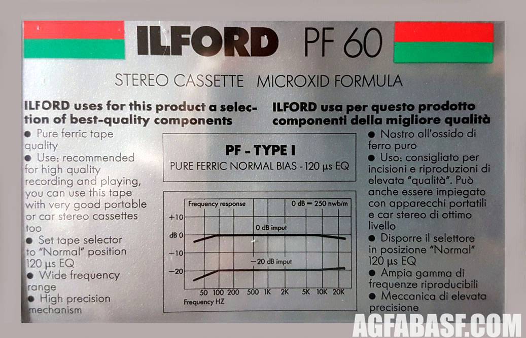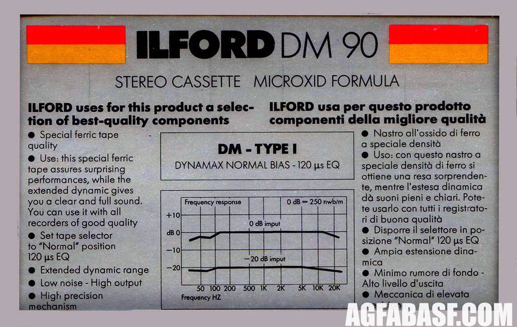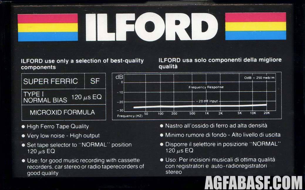 Фирма Ilford Photo — британский производитель аналоговых фотоматериалов - фотоплёнок, фотобумаг и химических реактивов для их обработки. Работает в этом направлении с конца XIX века до сих пор, в то время как основные компании - Agfa, Kodak и прочие давно свернули свою деятельность на этом рынке и занялись другим бизнесом. В эпоху Аудио компания имела несколько небольших линеек аудиокассет с целью популяризации своей торговой марки, для производства которых обращалась к грандам кассетного производства - японской Tayo Yuden, западногерманской Magna, швейцарской ICM. Логично, что на аудиорынке название Ilford Photo было сокращено до просто Ilford.