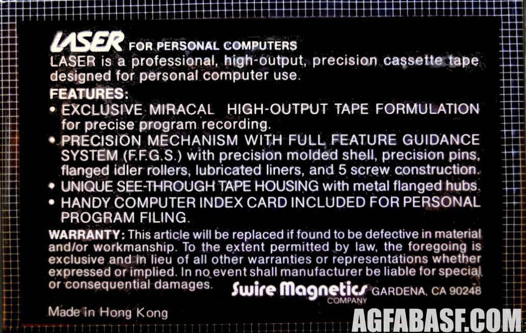 Кассеты известного гонгконгского производителя Swire Magnetics. Поставлялись на рынки Японии и США.