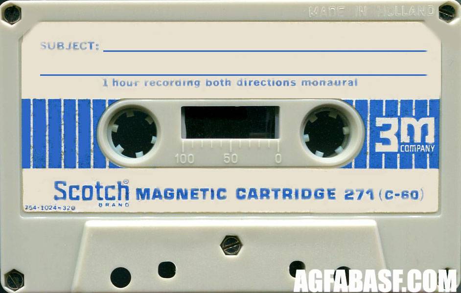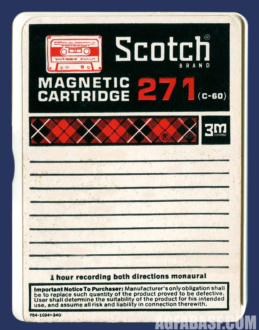 У фирмы 3М трехзначные номера моделей кассет означали толщину, материал и магнитные свойства ленты. Индекс 271 имела лента C-60 для использования, в том числе, на низкой скорости.  272 - это более тонкая лента C-90.