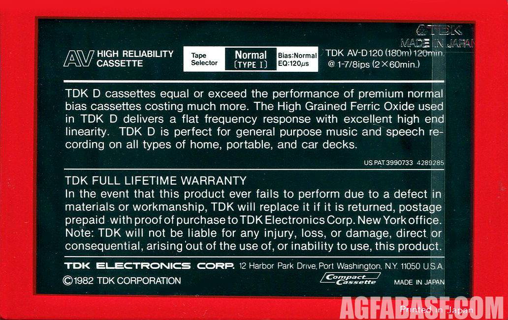 Аудиокассеты TDK 1982-84 US, Canada