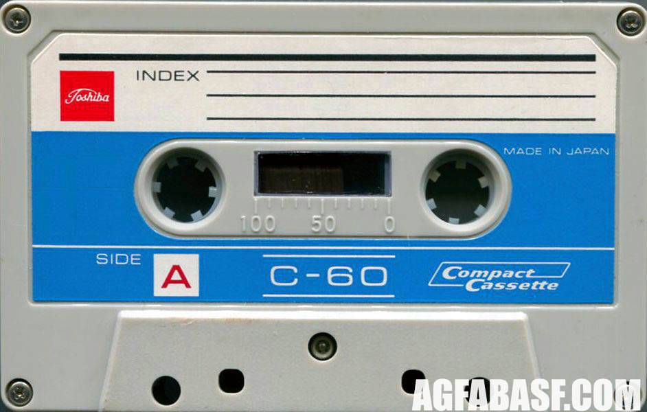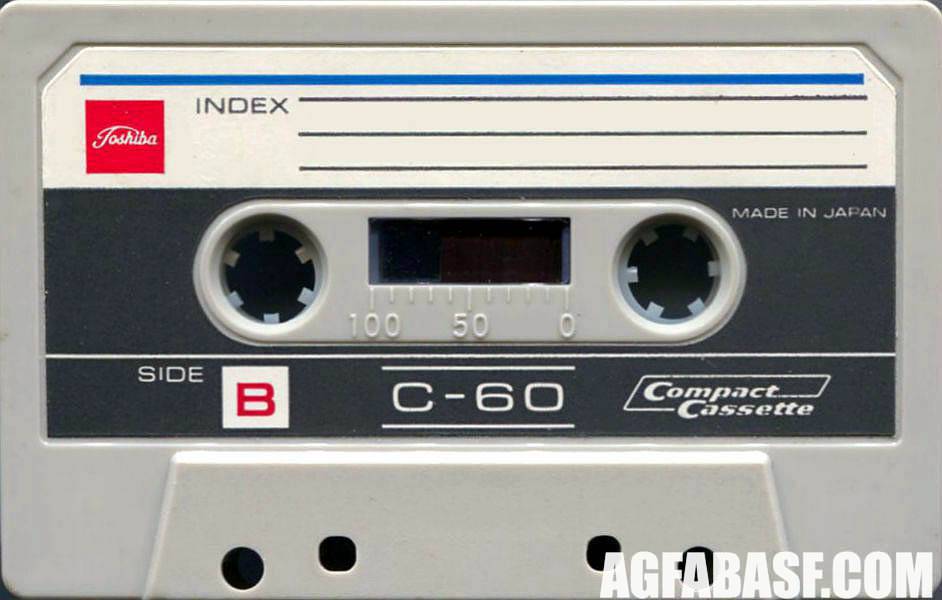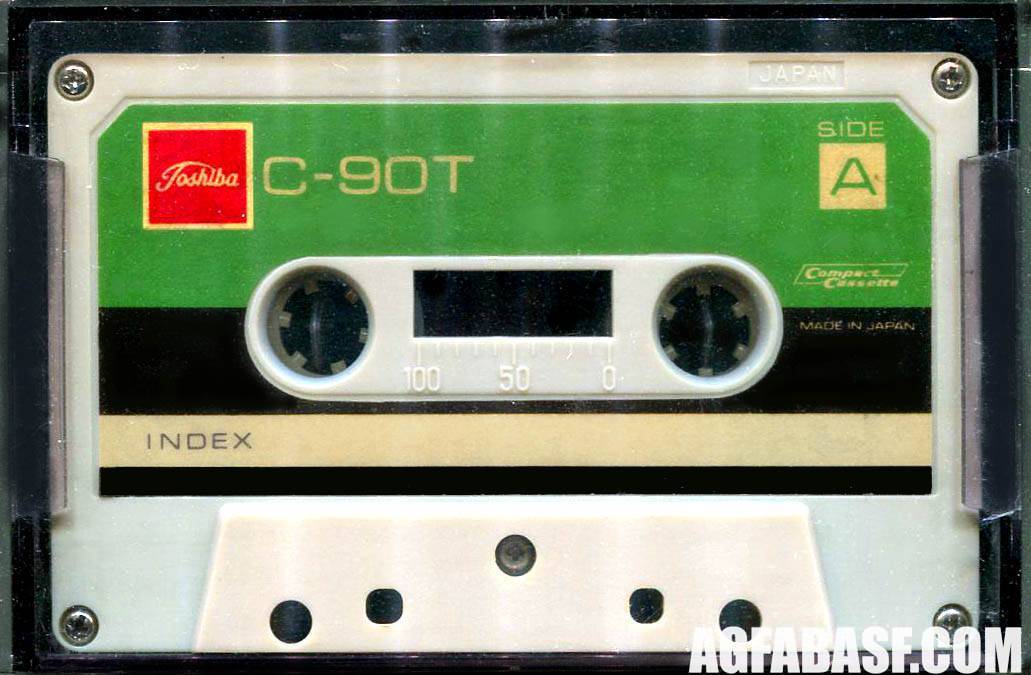 Release year: 1969Market: JAP Одна из первых кассет под маркой Toshiba (ОЕМ TDK). Стороны A и B имели разный цвет. Это говорило о том, что к концу 60-х кассеты уже переставали иметь вид чисто технологического продукта (как самая первая кассета от Philips) и разработчики уже думали о дизайне. То есть, о маркетинге. |
