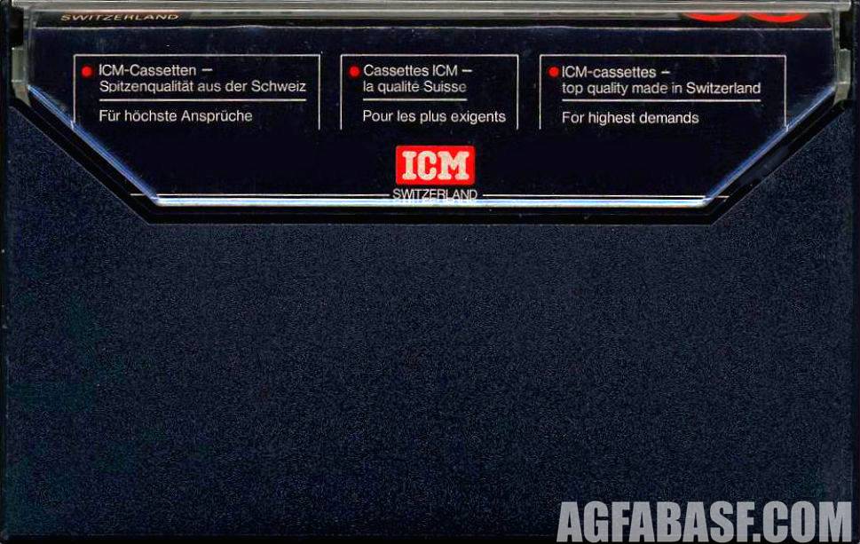 ICM – крупная швейцарская компания, в 70-80-е производившая кассеты и комплектующие к ним под десятками брендов, включая BASF, Philips и JVC. Аббревиатура ICM расшифровывается, как International Cassette Ministry (Международное Кассетное Министерство). Вернер Вебер, основатель и руководитель ICM, был очень религиозным человеком и сначала выпускал кассеты с записями христианской музыки и церковных служб. Но поскольку подобная затея оказалась коммерчески провальной, то был налажен контакт с крупными звукозаписывающими компаниями, по заказу которых ICM начала выпускать кассеты с записями, а затем и чистые кассеты под собственным брендом. В 80-х швейцарская компания выпускала продукцию даже для таких гигантов, как BASF, Philips, JVC.