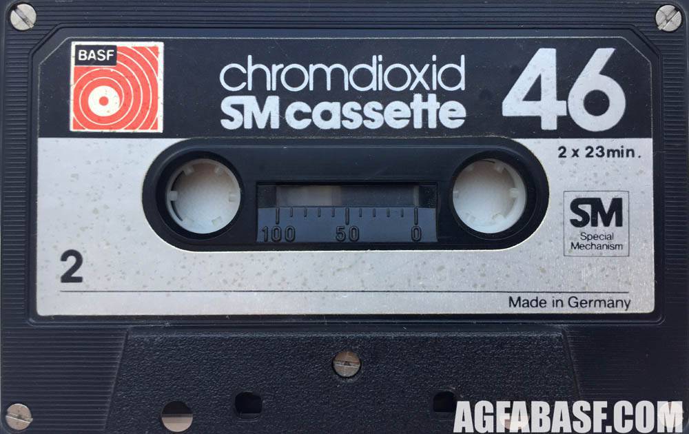 Model: ChromdioxidRelease year: 1974Tape type: CrMarket: EUR (фото из рекламного буклета BASF 1974 года, где впервые появляется эта модель BASF Chromdioxid. Ранняя версия имела рифленый корпус касссеты и футляра. |